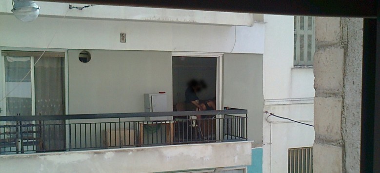 Γύρω στις 10 το πρωί της Κυριακής, την ώρα που οι πιστοί επιστρέφουν από τη Θεία Λειτουργία του Ι.Ν. Αγίου Διονυσίου και περνούν κάτω από το μπαλκόνι του 80χρονου συνταξιούχου για να επιστρέψουν στα σπίτια τους, τότε βρίσκονται αντιμέτωποι με τον πειρασμό... Οι αναστεναγμοί των δύο παρτενέρ και τα σεξουαλικά παραγγέλματα του 80χρονου δονούν την ατμόσφαιρα, προκαλώντας αμηχανία και δεικτικά σχόλια.